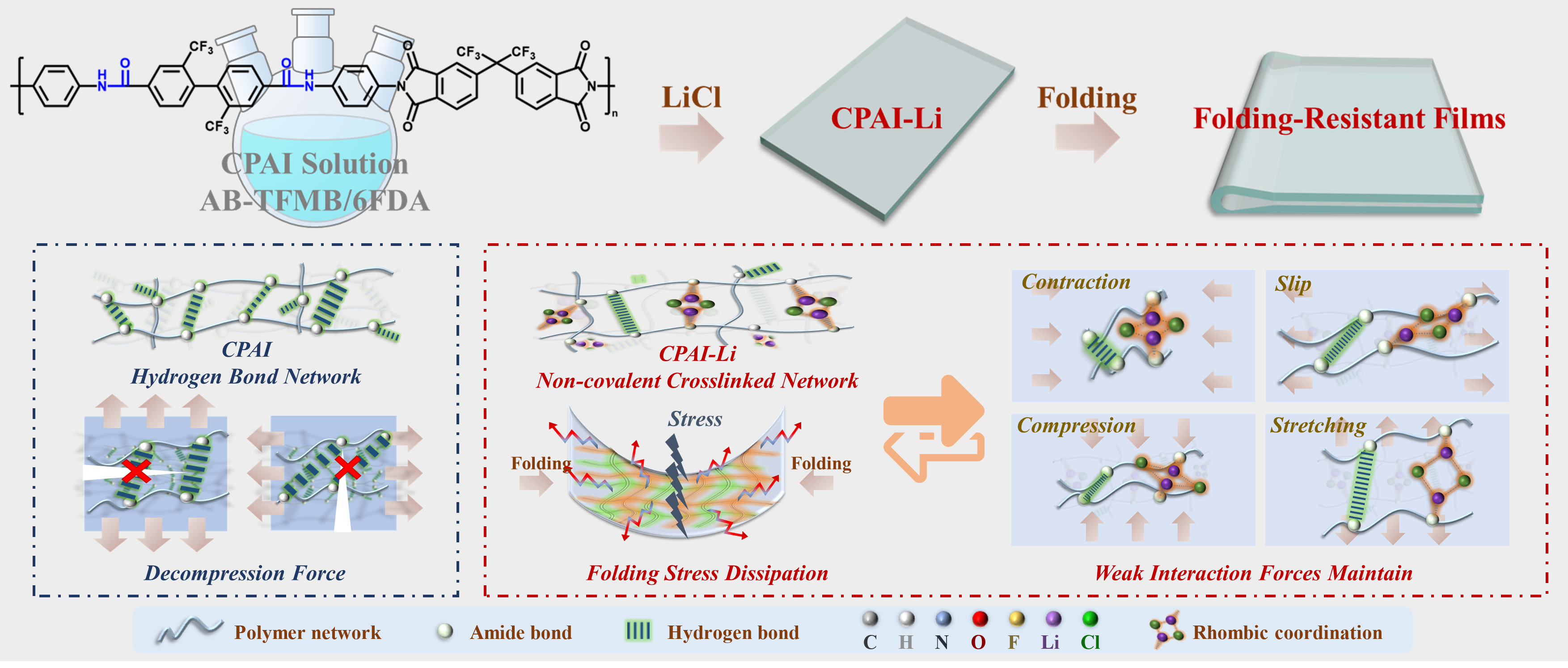 随着可折叠电子设备向更轻薄、更耐用的方向发展,其对核心柔性基板材料的力学性能提出了近乎苛刻的要求。传统的无色聚酰亚胺(CPI)薄膜在大曲率弯折(如超小曲率半径≤0.5 mm)下反复折叠时,易因分子链不可逆滑移而产生永久性折痕,并容易因引发应力集中而导致新型的“拱起”失效模式,制约了设备的可靠性与使用寿命和用户体验。针对这一系列挑战,365英国上市集团刘向阳课题组团队通过精细的分子工程设计,先后在国际权威期刊Macrom...